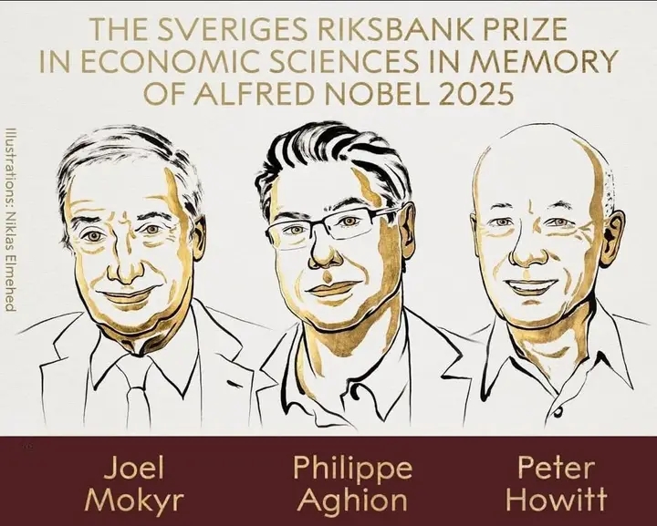Bu il İqtisadiyyat üzrə Nobel mükafatını innovasiyaya əsaslanan iqtisadi artım və yaradıcı dağıntı nəzəriyyəsini elmi şəkildə izah etdiklərinə görə Joel Mokyr, Philippe Aghion və Peter Howitt qazandı.