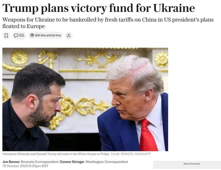 16 sentyabrda “The Telegraph” yazdı ki, Tramp “Ukraynanın qələbə fondu”nu yaratmaq və onu Çin məhsullarına 500%-lik yeni tarif hesabına doldurmaq istəyir. ABŞ nümayəndələri bu planı avropalılarla müzakirə etməlidirlər.