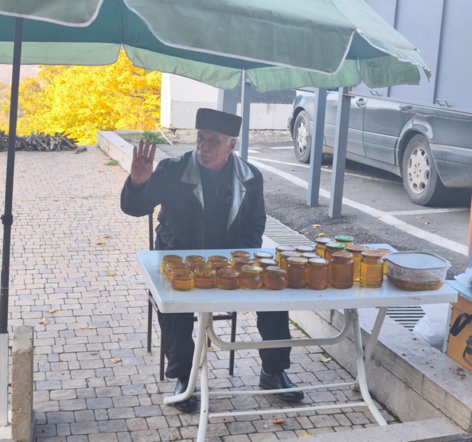 Şuşada, İsa bulağının yaxınlığında təqribən 70 yaşlı buxara papaqlı bir kişi çətir altında oturub bal satırdı. Düşündüm ki, pis “toçka” deyil, bulağa gedən hər kəs onun qarşısından keçməlidir, o cümlədən biz də. Arif Hacılı onu uzaqdan görən kimi bizə dedi ki, onu hardansa tanıyır.
