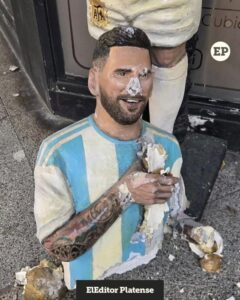 Məlumata görə, El Nuevo Mundial kafesinin girişində yerləşən heykələ naməlum şəxslər hücum edərək onu iki yerə bölüblər. Heykəldə Messi Argentina millisinin formasında, əllərində dünya çempionluğunun kuboku ilə əks olunmuşdu. Skulptura 2022-ci ildə Qətərdə qazanılan dünya çempionluğuna həsr olunub.