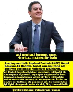 Əli Kərimli bəy kübar, demokrat, milliyyətçi bir Azərbaycan ziyalısıdır. Elçibəyin ən yaxınında, Xalq Cəbhəsi mübarizəsinin içində bir Türk milliyyətçisi olaraq daim dik durmuş bir qardaşımızdır. Qiyamla, zor tətbiq edib dövləti ələ keçirmə kimi bir əyriliklə işi olmayacaq qədər ağıllı, məntiqli, izan sahibi bir insandır. Ondan qorxaraq onu həbsə atmaq isə hansı ruh halının nəticəsidir — bunu təxmin edin. TÜRKİYƏ ZİYALILARININ BU AZƏRBAYCAN ZİYALISI DOSTUMUZA SAHİB ÇIXMASI, HEÇ OLMASA ONUN DƏRDİ İLƏ DƏRDLƏNMƏSİ MİLLİ BİR BORCDUR.