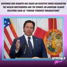Florida ştatının qubernatoru Ron DeSantis Amerika-İslam Münasibətləri Şurası (CAIR) və Müsəlman Qardaşlarının ştat ərazisində xarici terror təşkilatı kimi tanınması haqqında sərəncam imzalayıb.