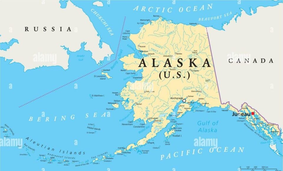 Alyaska əvvəlcə departament, sonra dairə, daha sonra ərazi adlandırıldı və yalnız 1959-cu ildə ştat oldu. Alyaska ABŞ-ın ən böyük ştatıdır və özündən sonra gələn üç böyük ştatın (Texas, Kaliforniya və Montana) birlikdə ərazisindən daha böyük əraziyə malikdir.