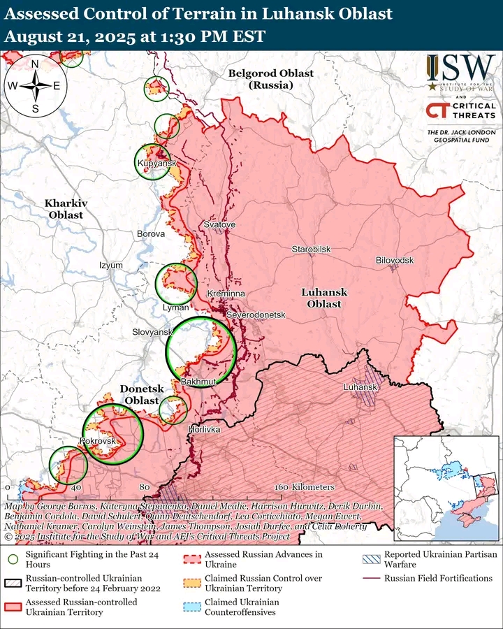 Luqansk vilayətinin tam işğal edilməsi barədə bəyanat artıq 4-cü dəfədir səsləndirilir. İlk dəfə bu barədə Sergey Şoyqu 2022-ci ilin iyulunda Vladimir Putinə məlumat vermişdi. 2025-ci ilin iyununda Leonid Paseçnik də 100%-lük nəzarəti iddia etmişdi. Ancaq avqust ayında Baş qərargah rəsisi Valeriy Gerasimov 99,7%-lik nəzarətdən danışıb, eyni fikri daha sonra Vladimir Putin də təkrarlamışdı.