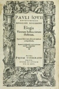 Sizlərə maraqlı bir kitab təqdim edirəm. İlk nəşri 1551-ci ildə çap edilib. Əldəki nüsxə portretli və bəzəkli nəşrdir – 1575-ci ilə aid. Kitabın latınca adı: “Elogia virorum bellica virtute illustrium”. Tərcümədə: “Hərbi şücaətləri ilə məşhur olan kişilərin tərifi”. Müəllif İtalyanın nüfuzlu tarixçilərindən Paolo Gioviodur. Rəsmlərin müəllifi isə Tobias Stimmer.